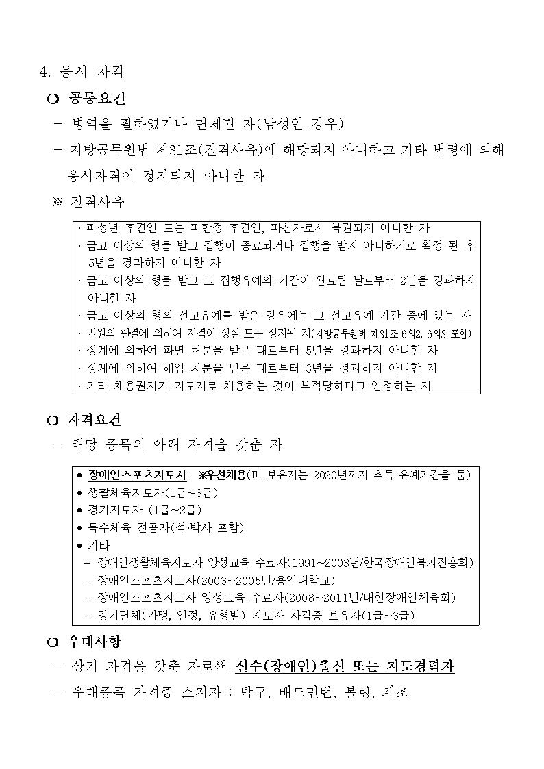 안산시장애인체육회 장애인생활체육지도자 채용 공고(마감)